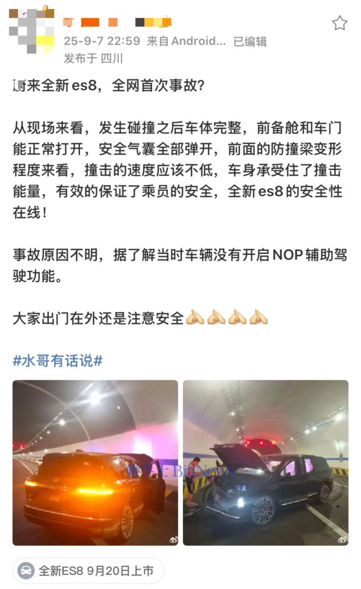 该网友发文称,“现场情况为,碰撞后车体完整正规配资排名,前备舱和车门能正常打开,安全气囊全部弹开,从前面防撞梁的变形程度推测撞击速度不低,但车身承受住了撞击能量,保障了乘员安全,体现出全新ES8安全性不错。”